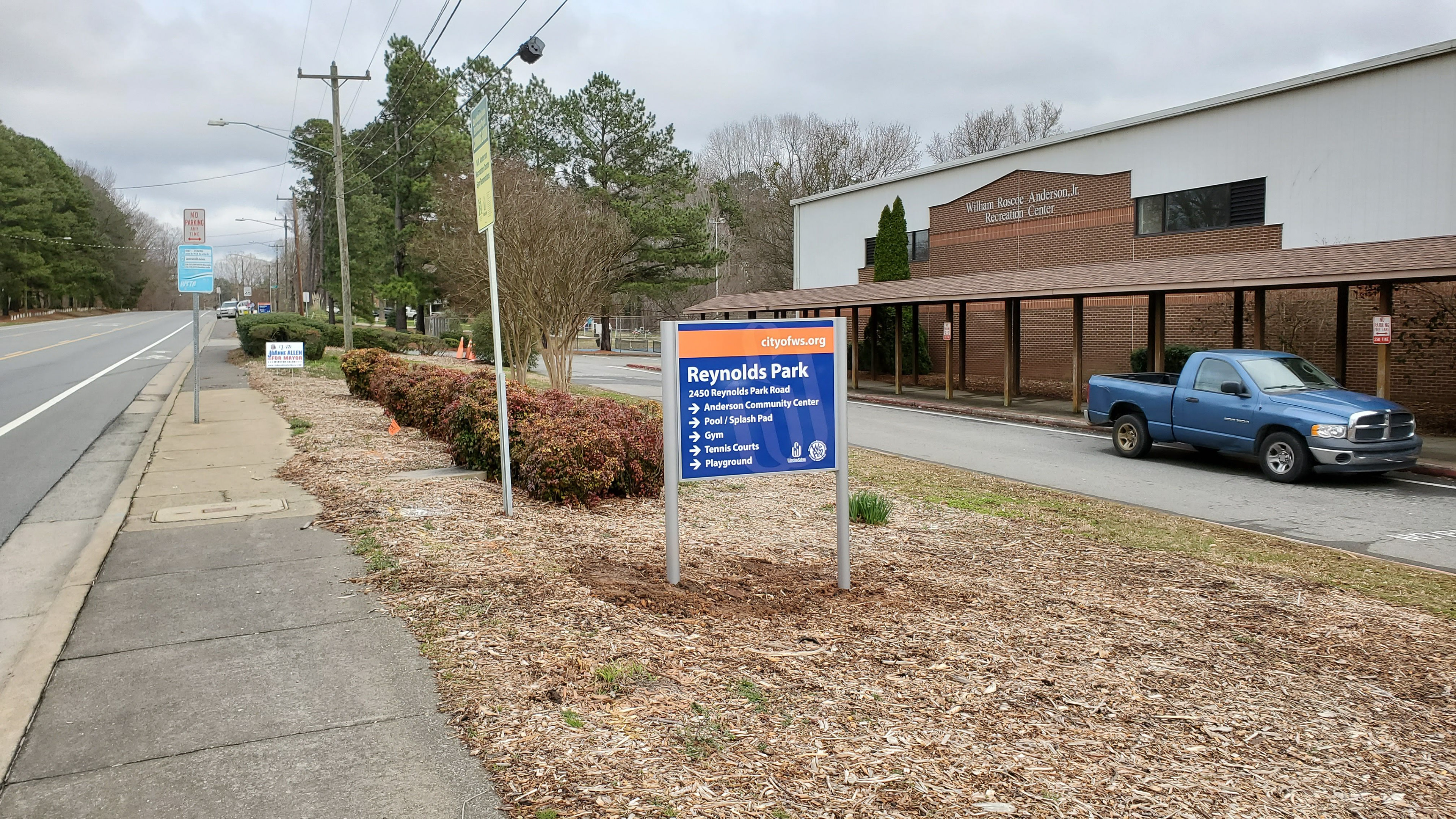 The assignment was to design a distinctive but cost-effective sign for more than 200 city facilities. Pictured is the initial rollout that began in the summer of 2020. In addition to working with city departments for each design I was also responsible for working with local sign shop for fabrication and installation.
